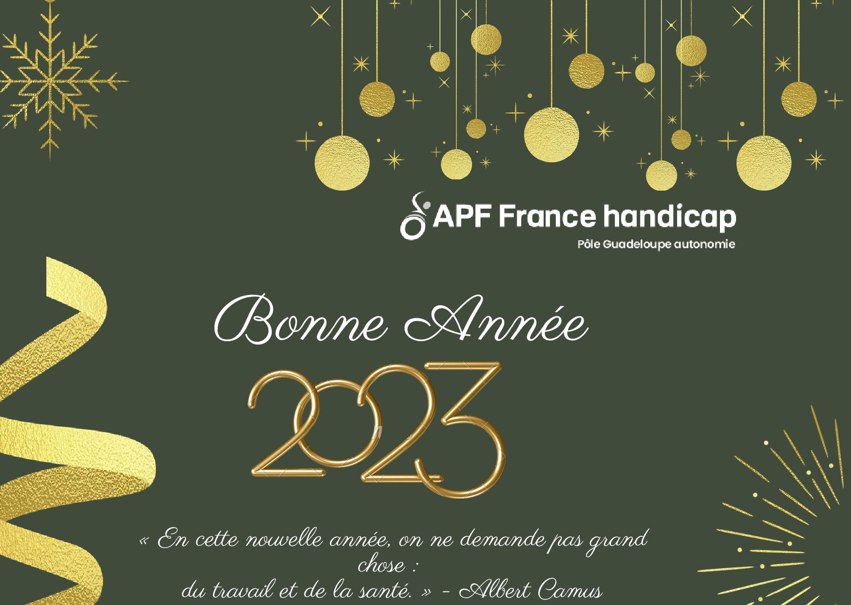L'équipe de l'APF Pôle Guadeloupe Autonomie vous souhaite ses Meilleurs voeux!.