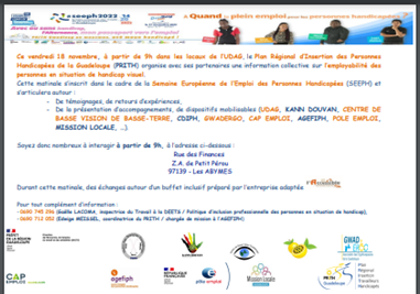 Handicapées de la Guadeloupe (PRITH) organise avec ses partenaires une information collective sur l’employabilité des
