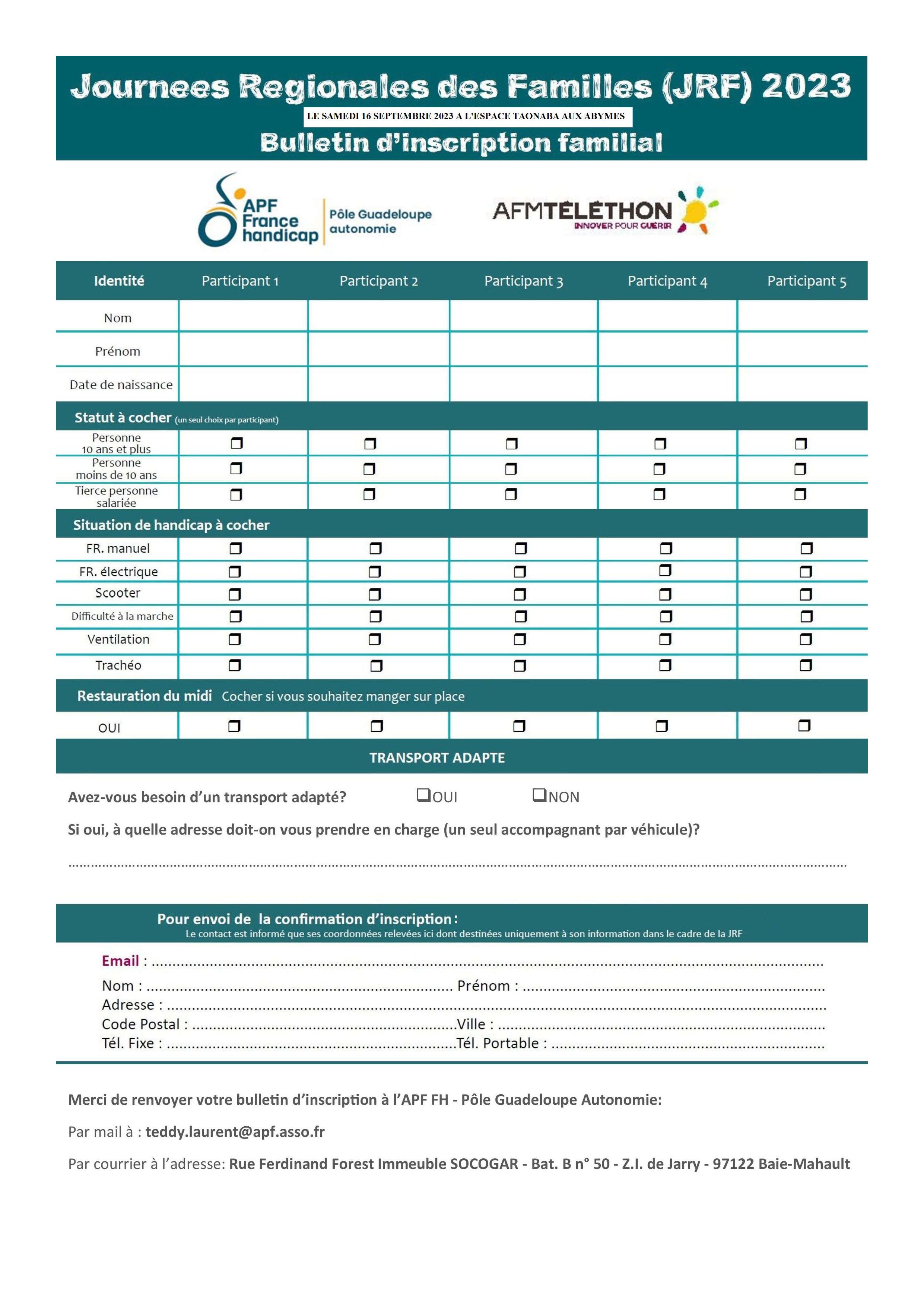 Dans le cadre de la Journée Régionale des Familles que nous organisons chaque année, nous vous faisons part de l'invitation et du bulletin d'inscription.