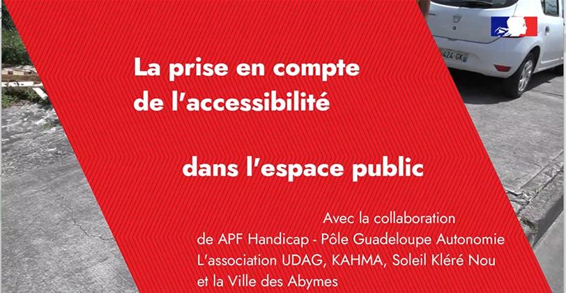 Retrouvez la vidéo réalisée par la DEAL 971 en partenariat avec la DMA (Délégation Ministérielle à l'Accessibilité)dans le cadre d'un webinaire intitulé "Accessibilité de la voirie, des espaces publics, des transports et des ERP en Guadeloupe". Certaines associations de personnes en situation de handicap du département ont été mobilisé : APF FH PGA, KAHMA, UDAG, Soleil Kléré Nou. Le but était de sensibiliser les Autorités Organisatrices des Transports, les Autorités Organisatrices de la Mobilité, les mairies etc via un film décrivant quelques difficultés rencontrées par les personnes en situation de handicap lors de leurs déplacements. L'objectif principal du webinaire était de faire un rappel à la loi, de mettre en valeur ce qui a déjà été fait sur le territoire et de montrer ce qui pourrait/devrait être fait.